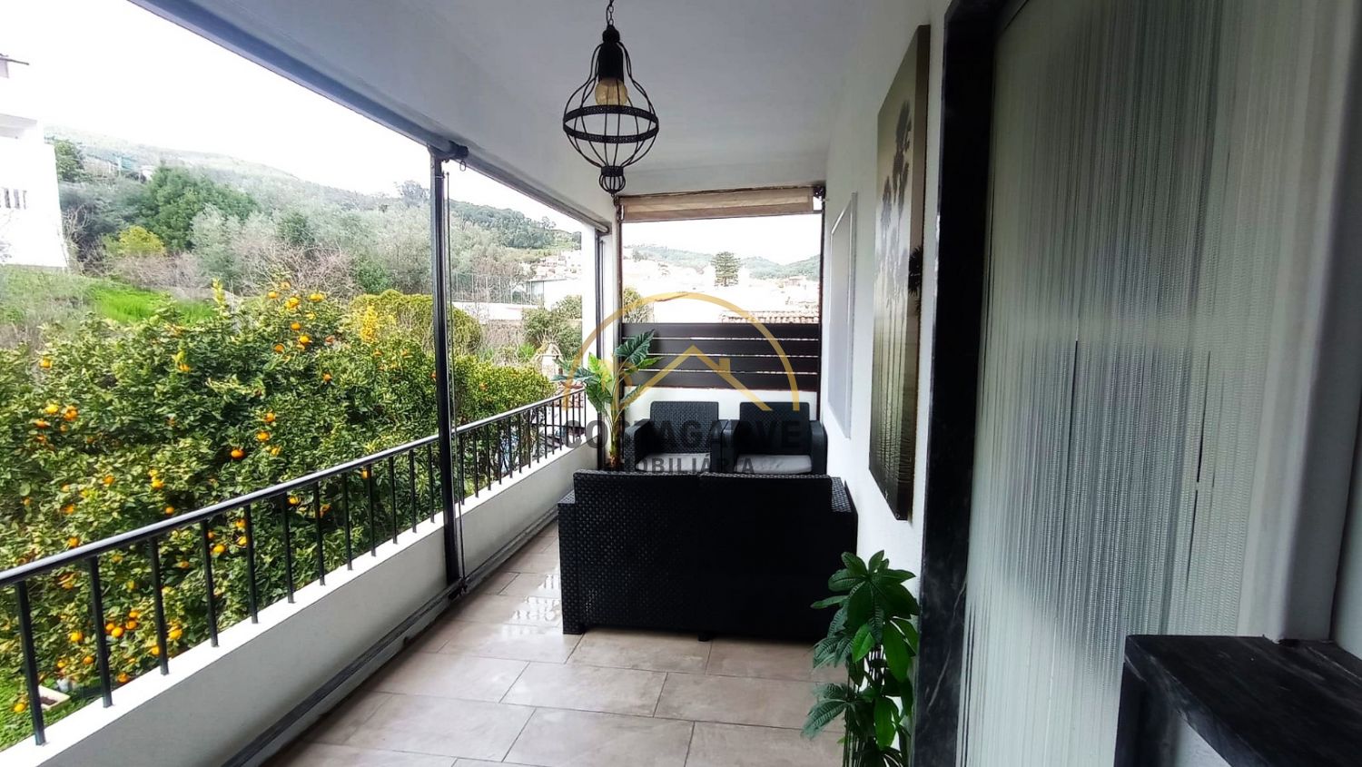 Varanda ampla virada a poente, perfeita para desfrutar do pôr do sol
